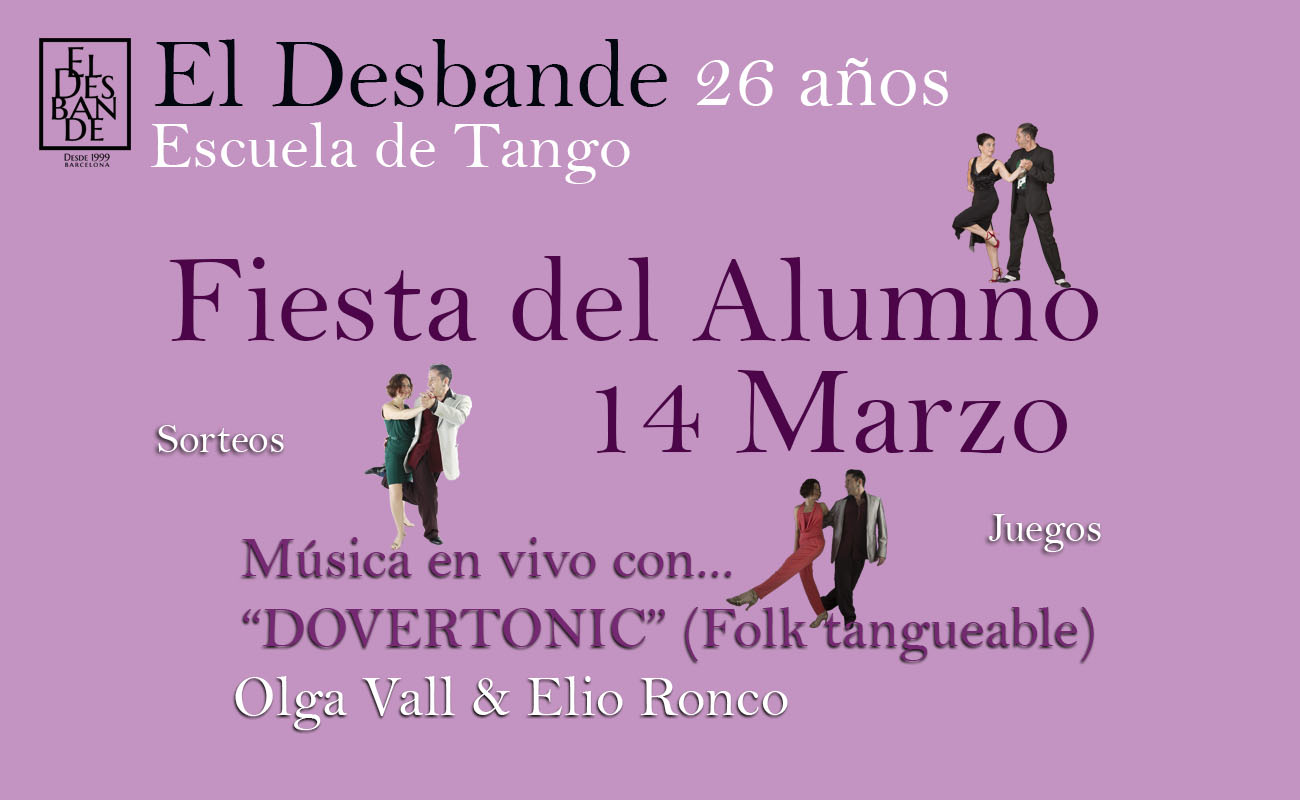 De 19h a 21.30h una práctica con música en directo donde contaremos con la presencia del duo de acordeones diatónicos, Dovertonic Olga Vall y Elio Ronco que interpretaran tandas de folk tangueable , Olga and Carlos que improvisarán un tango, Jekaterina de Dj , y el sorteo de 1 trimestre gratuito entre los participantes , además de otras sorpresas